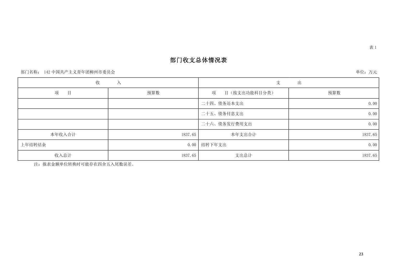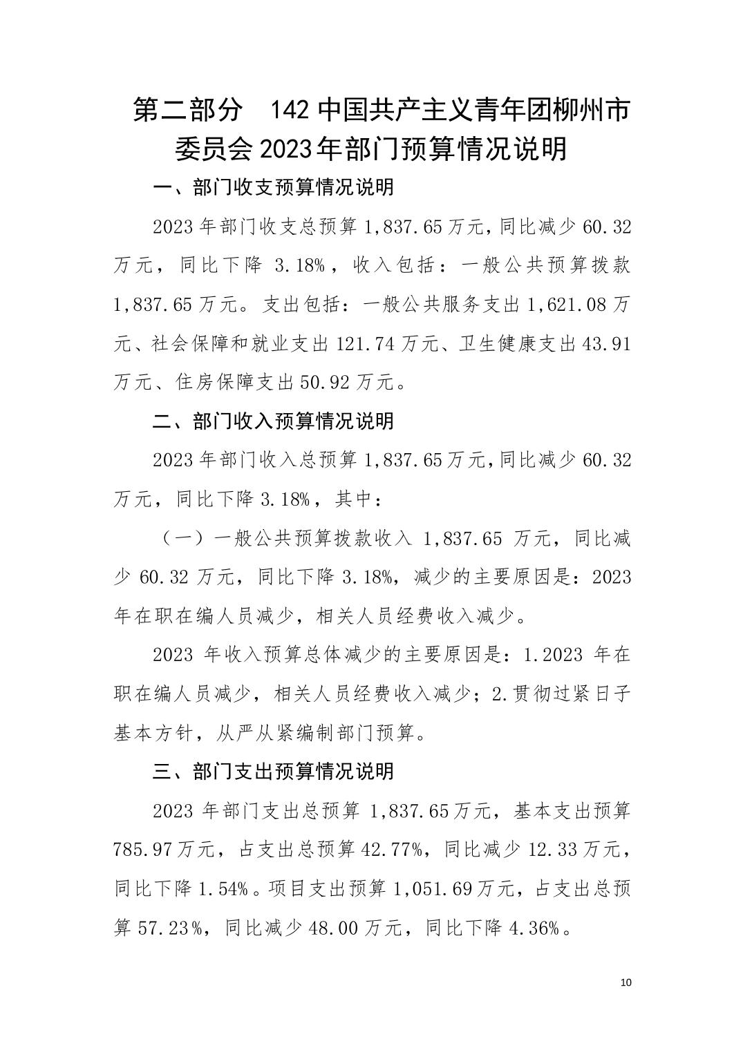 2023年142中国共产主义青年团beat365中国在线体育官网_365bet足球官方开户网_365bet大陆网址委员会部门预算.pdf